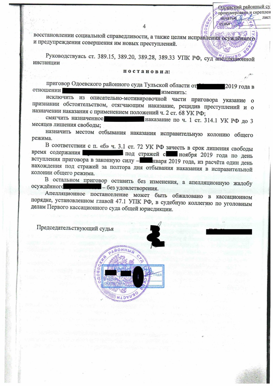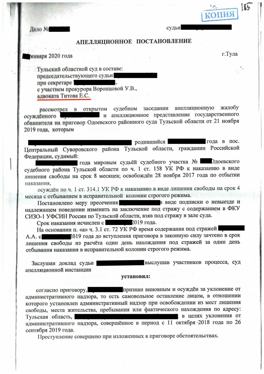 Порядок подачи апелляции осуждённым