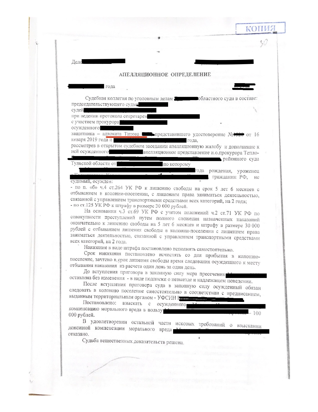 | 5 | Дистанционное рассмотрение дела адвокатом. | 7 000 р. |