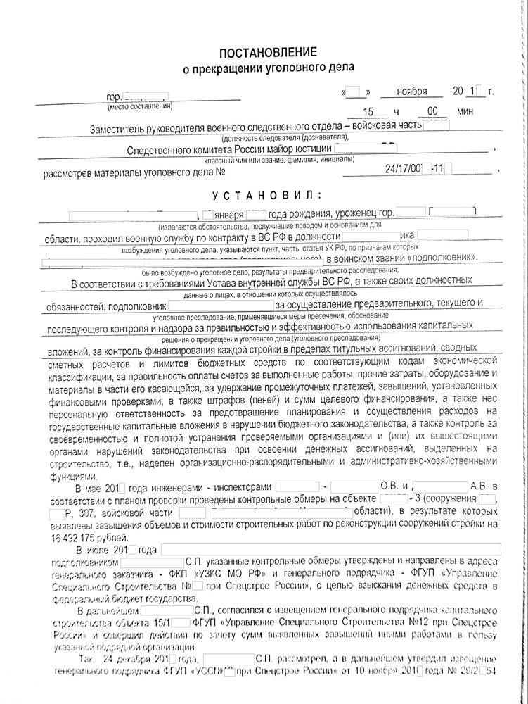 Заместителем руководителя ВСО было принято решение прекратить уголовное дело в отношении моего Доверителя по реабилитирующим обстоятельствам.