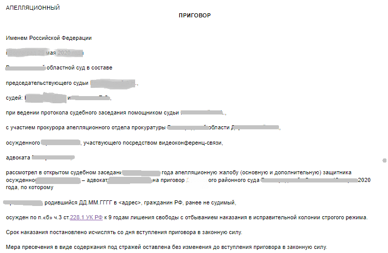 Если постановление не рассматривалось в апелляционном порядке, делается пометка.