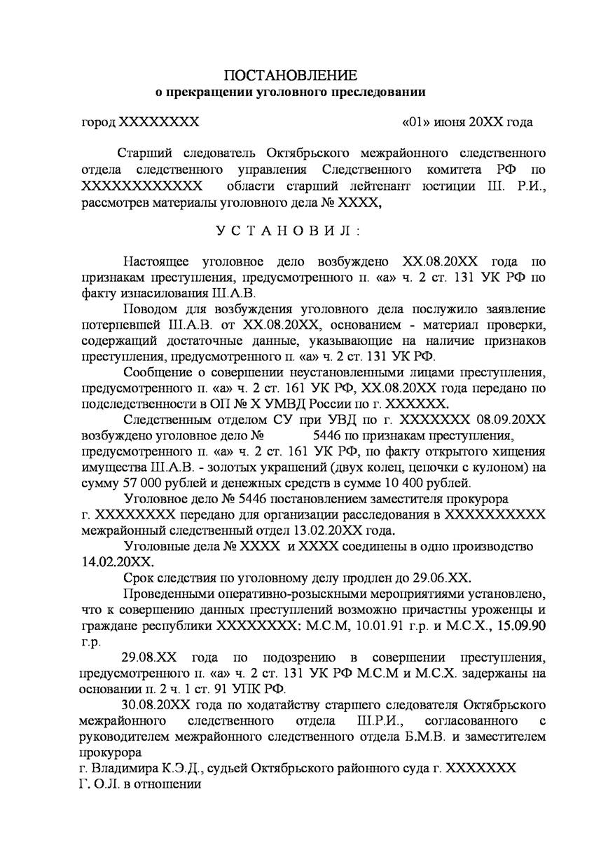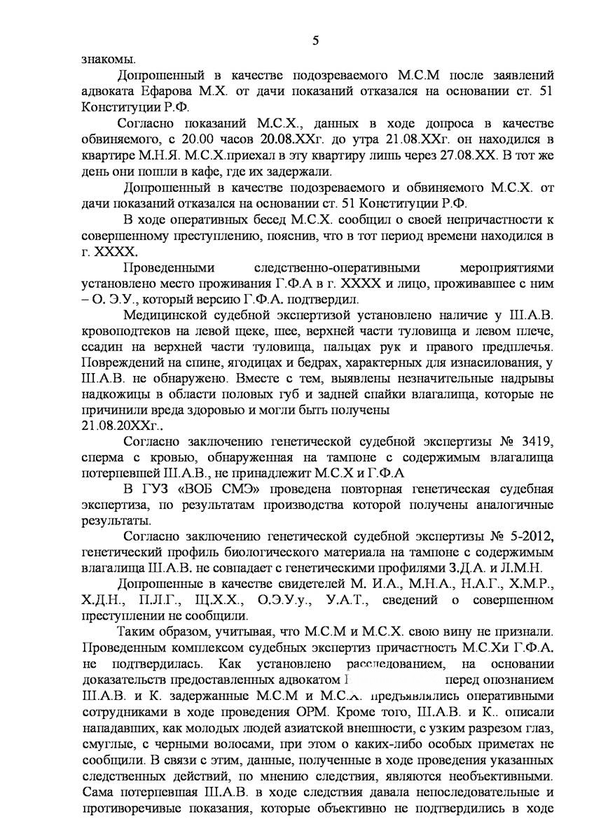 Адвокат в г. Клин добился прекращения уголовного дела на стадии предварительного расследования по реабилитирующим основаниям в отношении двух граждан иностранного государства обвиняемых органами предварительно следствия в совершении преступления предусмотренного п. «а» ч.2 ст.131 УК РФ (изнасилование совершенное группой лиц) и п."а" , п."г" ч.2 ст.161 УК РФ (грабёж), наказание за которое предусматривает лишение свободы от восьми до пятнадцати лет, то есть преступление, которое в соответствии с ч.5 ст.15 Уголовного Кодекса Российской Федерации отнесено к категории особо тяжких преступлений.